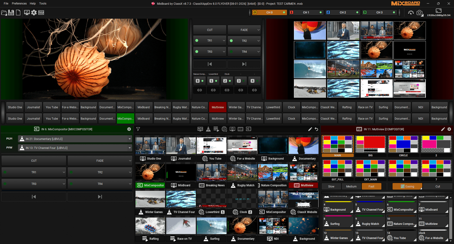 Create Complex Compositions with Unlimited Layers with FOR-A MixBoard Powered by ClassX. The software switcher supports various input types including SDI, NDI, and SRT, making it a versatile solution for hybrid production setups.
