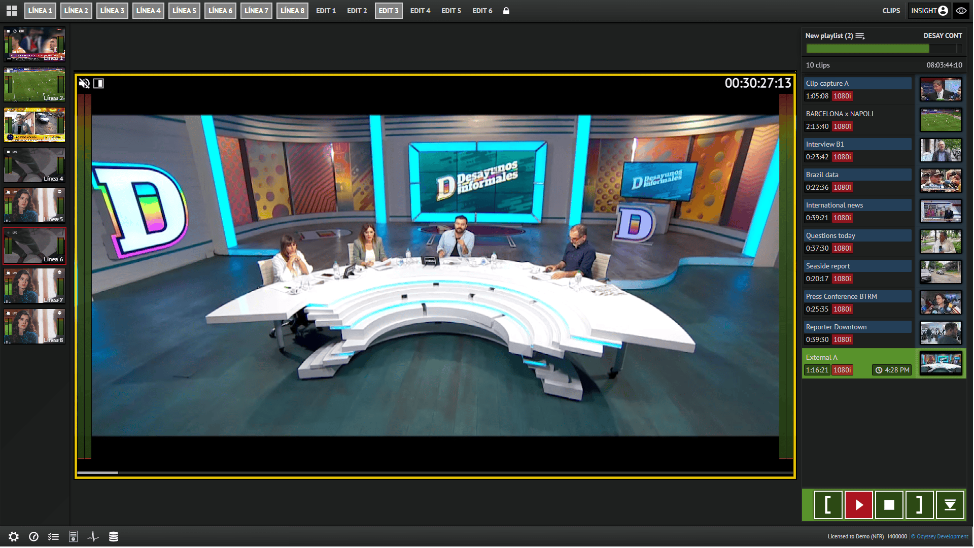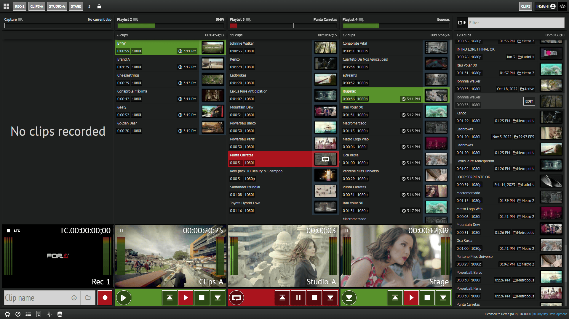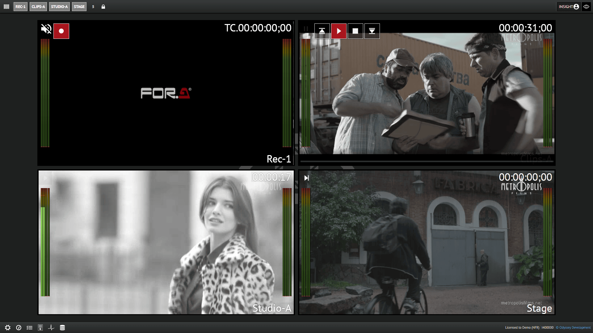ODYSSEY’s Insight Production Server is a versatile system with many features designed to provide easy media management and integration with studio workflows. The channel density can grow from two up to four or eight channels, depending on the system requirements. A wide range of codecs and wrappers provide easy media exchange, playback and recording without conversion. SDI, 12G-SDI and NDI® interfaces are supported across the range of models.