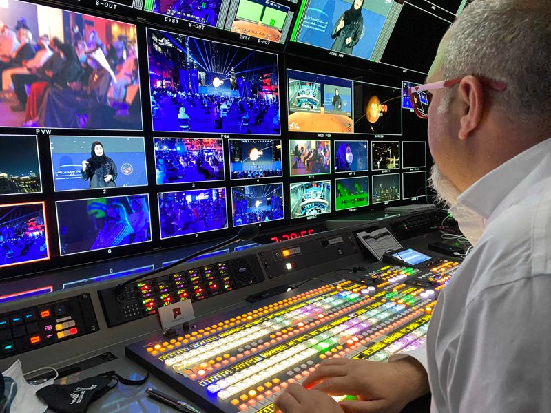 Abu Dhabi-based host broadcaster Media Mania used two large production trucks in Dubai to provide event coverage to about 21 stations. OB1 anchored a 15-camera shoot at the Mohammed Bin Rashid Space Centre, while OB2 had 18 cameras at the Burj Khalifa skyscraper to cover the celebration.