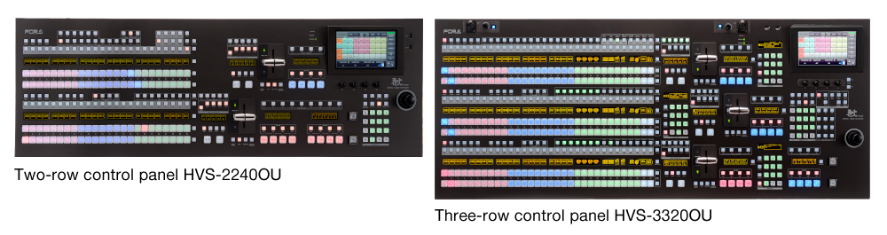 Both trucks feature the FOR-A HVS-2000 video switcher. OB1 includes a 2 M/E version with a two-row control panel, while OB2 includes a 3 M/E version with a three-row control panel. The switchers are fully loaded with I/O and DVE options, and both trucks include additional FOR-A equipment, including FA-505 and FA-1010 multi-channel signal processors.