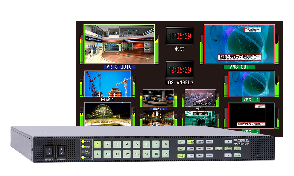 Of course, FOR-A offers a number of solutions for IP-based workflows. Our MV-1640IP multi viewerlets you monitor up to 16 IP sources in a familiar, flexible interface. For the Universal System Frame, our USF-10IP Series of modules converts video and audio signals between IP formats or between IP and SDI formats for hybrid systems. And our HVS-6000 video switcher allows IP interfaces to be mounted on all I/O slots.