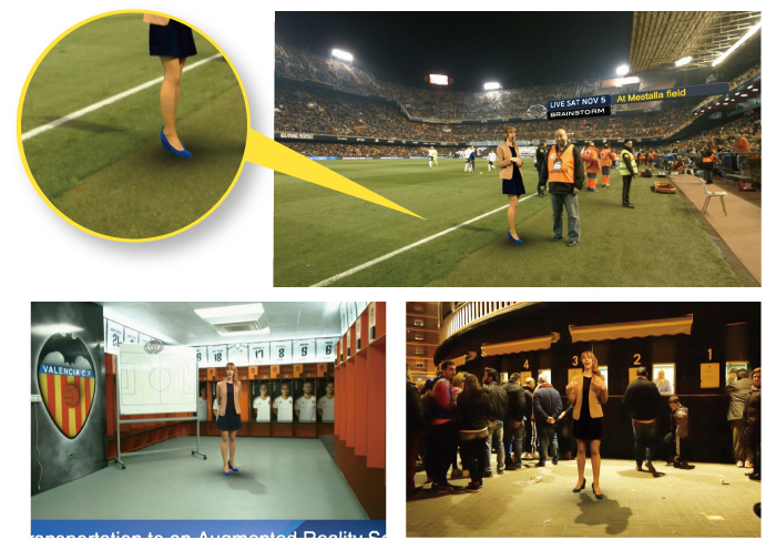 Shadows of composited subjects are generated in real time to match the background, applying 3D graphics technology