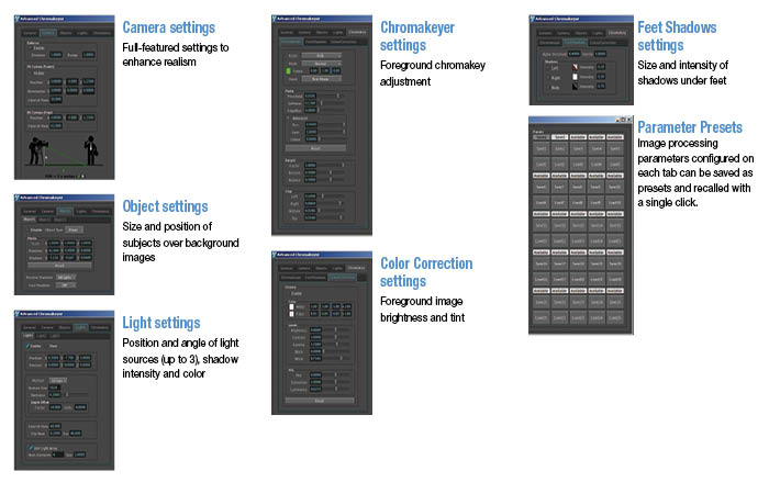 - Realistic chroma key compositing with two types of 3D shadows: under feet + whole body