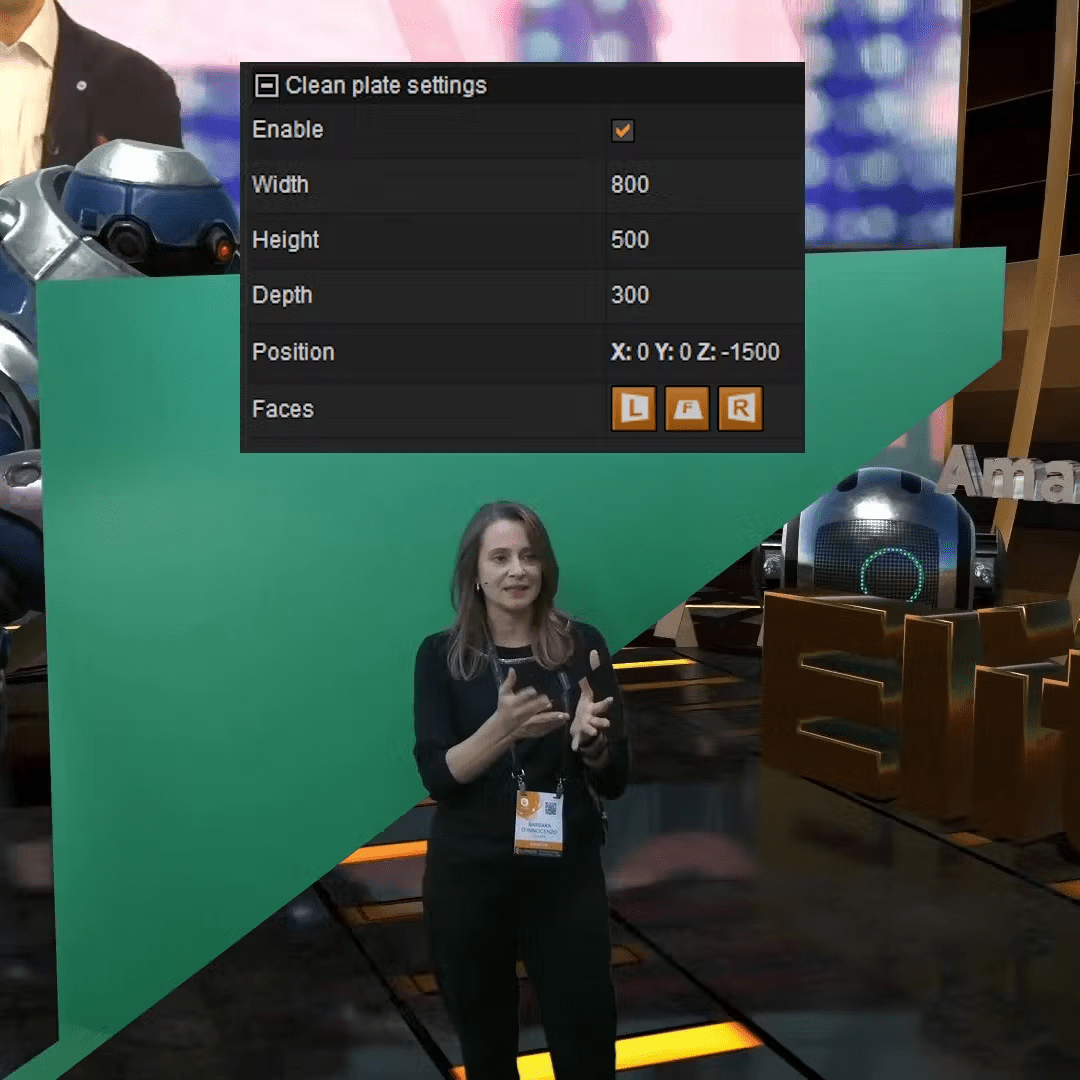 Elitium is the perfect solution to seamlessly expand a virtual set in a 360-degree or infinite manner. Leveraging the “Clean plate” feature, even a small “chroma key” space can suffice. Everything else will be seamlessly extended to create a truly immersive “extended virtual set”.