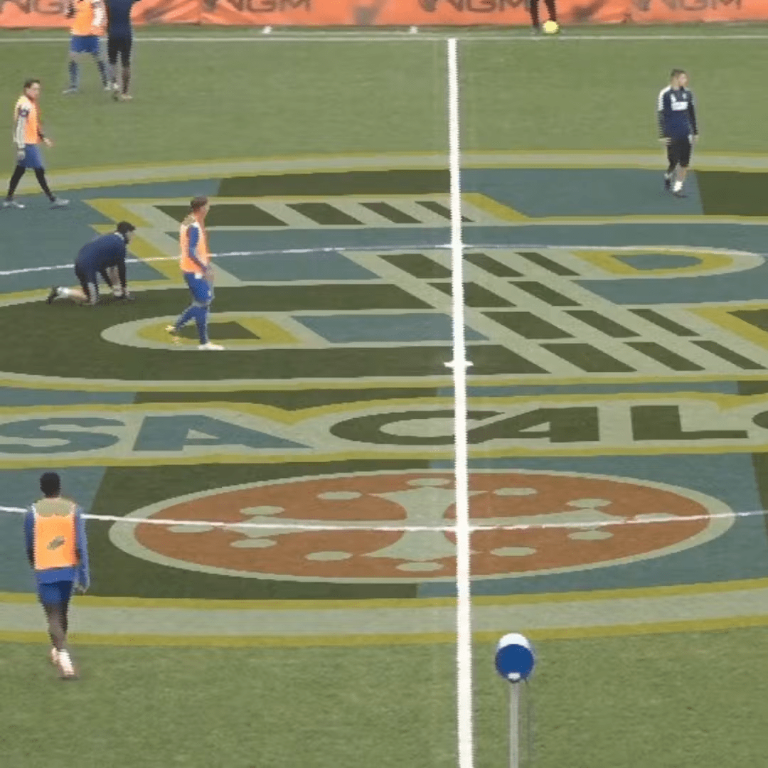 In pitch branding, graphics seamlessly merge with any color surface. For instance, take the vibrant green of a grass sports field: while players and pitch lines remain clearly visible above the surface, Elitium makes logos, scores and promotional contents appear merged into the green part only.