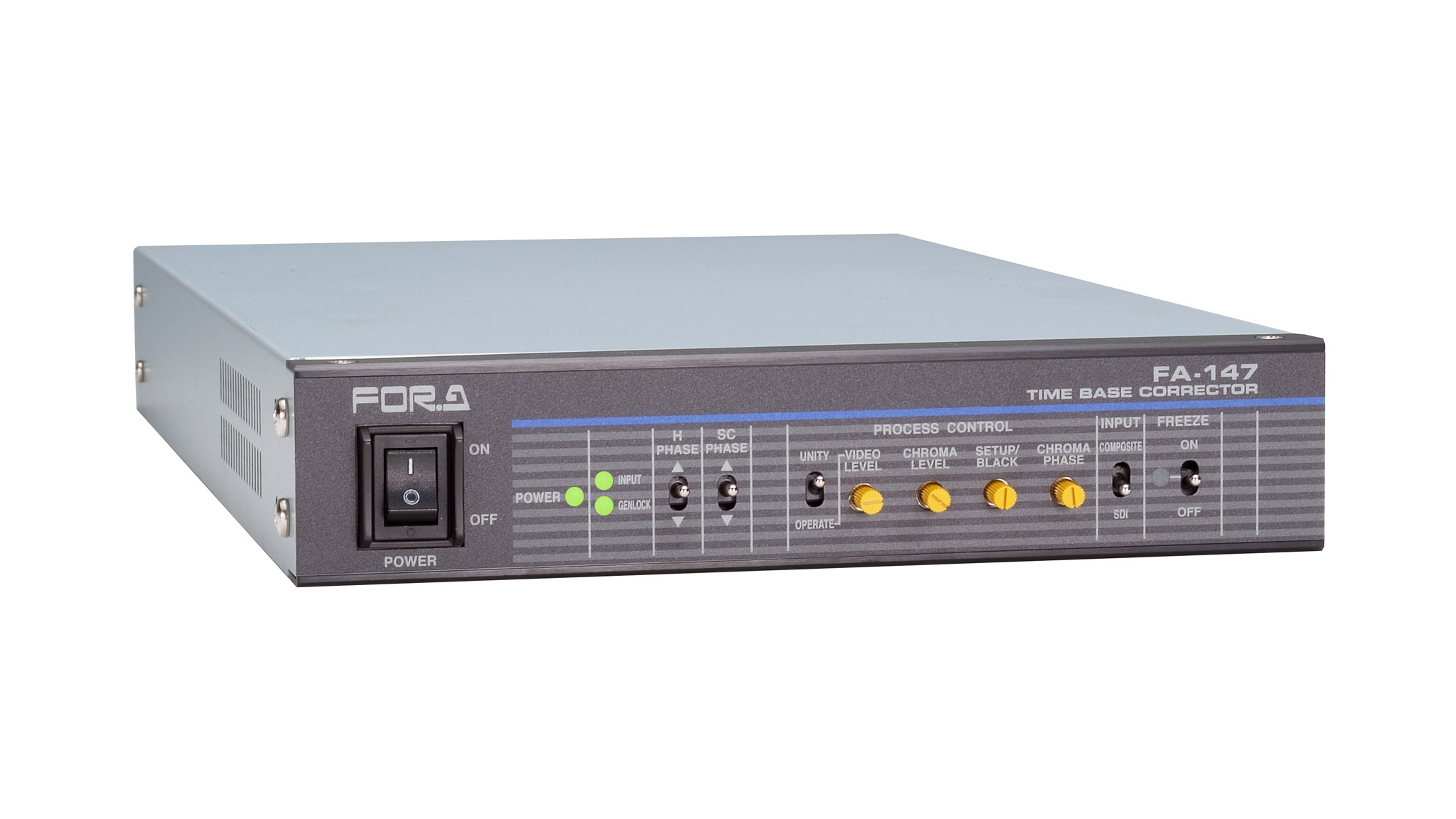 A compact and very powerful TBC/FS, the FA-147 is capable of analog composite to/from digital component conversion, and has wide range internal genlock capability, so that almost any VHS signal can be genlocked.