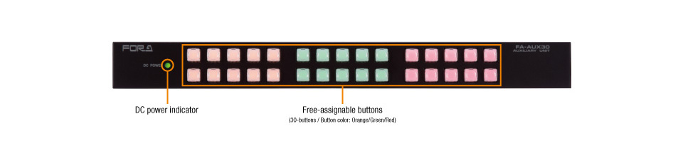 The FA-AUX30 remote control panel facilitates access to the rich functionality of the FA-505. Its switch box works over a GPI connection and can be used to freely assign router panel button functions to the 30 front panel buttons, and to assign shortcuts for each function. In addition, preset patterns are prepared in advance in the GPI settings, allowing you to begin using the FA-AUX30 immediately, with no detailed configuration required.