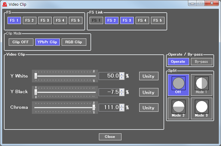 In addition to proc amp., the FA-505 incorporates a color correction function, allowing color correction to be performed in three color correction modes, which offer a flexible color adjustment environment that includes gamma adjustment, clipping, and various level adjustment functions.