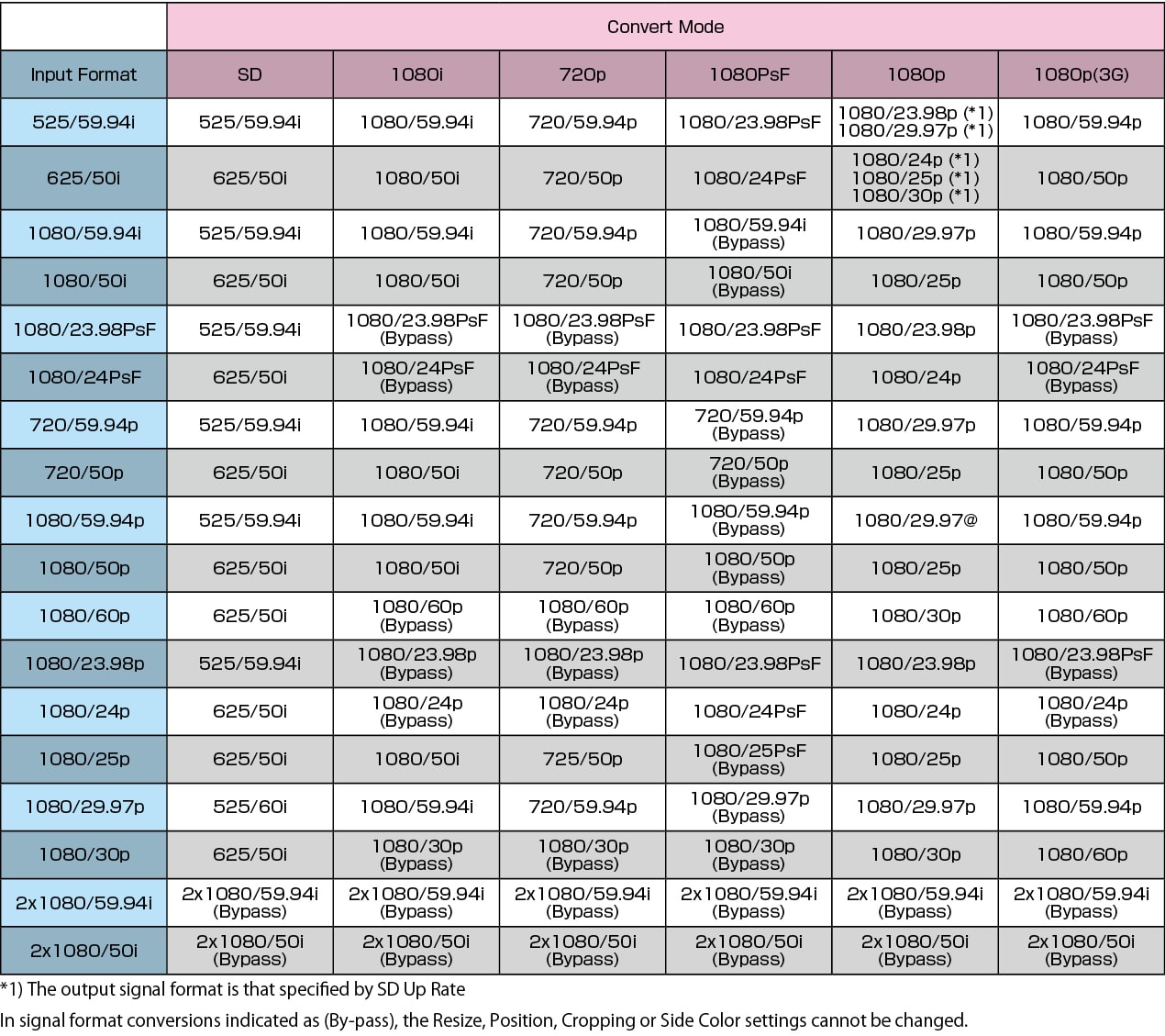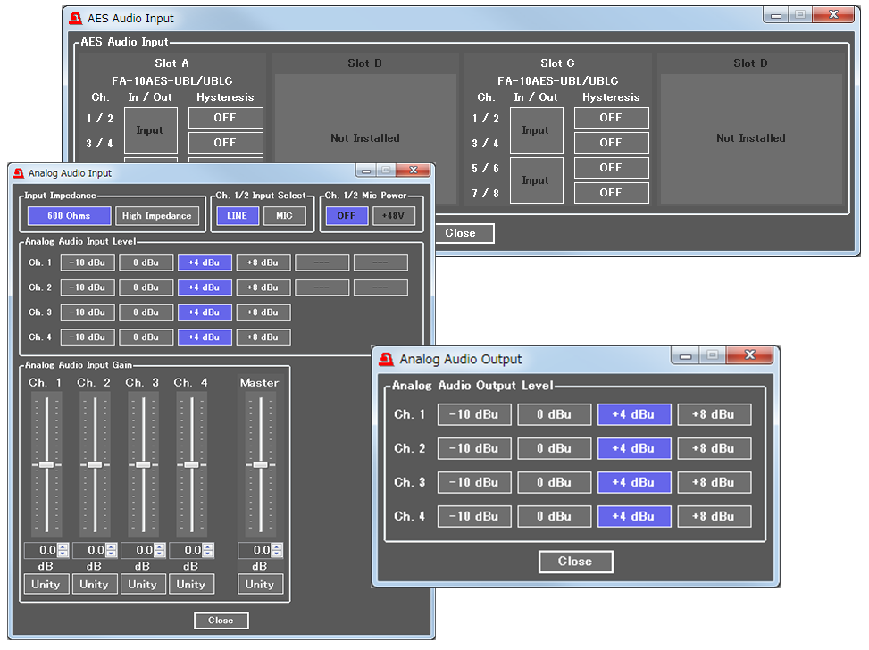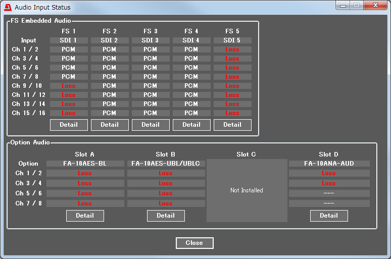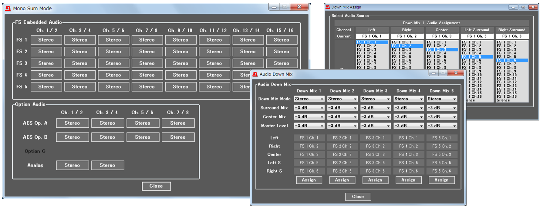 - Down-mixing supports only SDI-embedded audio signals