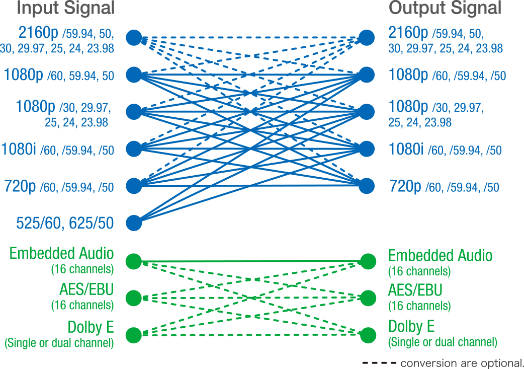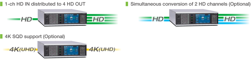 - Simultaneous conversion of 2-channel video inputs (Optional: when using 3G/HD-SDI)