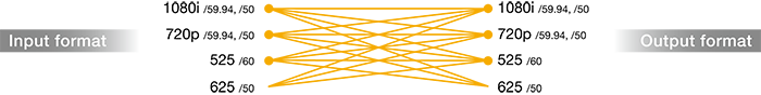 - Includes upconversion, downconvsion, and crossconversion (1080i↔720p)