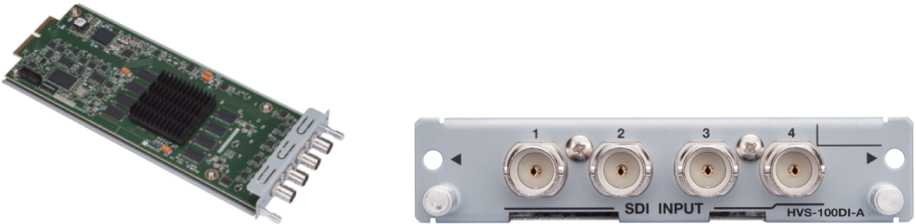 4 channels of 3G/HD-SDI input are possible with a single card. A frame synchronizer function for all inputs and re-size (expansion) function for 2 inputs are provided. SD* images can be processed internally as HD images.