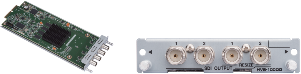 2 channels of 3G/HD-SDI output are possible with a single card. As down-converters are provided for all outputs, HD and SD images can simultaneously be output.