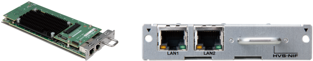 HVS-NIF interface cards provide NDI High Bandwidth connectivity for high-quality, low-latency video transmission and NDI HX2 for low bit rate transmission. The cards make it easy to build a mixed baseband/IP system you can use to exchange video and audio over a network with other NDI equipment. This is extremely effective for live video production -whether you are shooting remotely or enjoying easy streaming from computers connected via NDI.