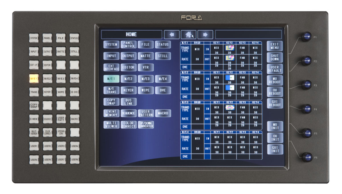 HVS-5400 with 4M/E. The HVS-5000 series operating control panel is similar to that of the current HANABI series products and have additional features that provide for sequencing and other functions to maximize your workflow, making it the best choice for both live and editing applications. The system can be designed to accommodate a variety of switcher combinations which can also scale to meet various applications.