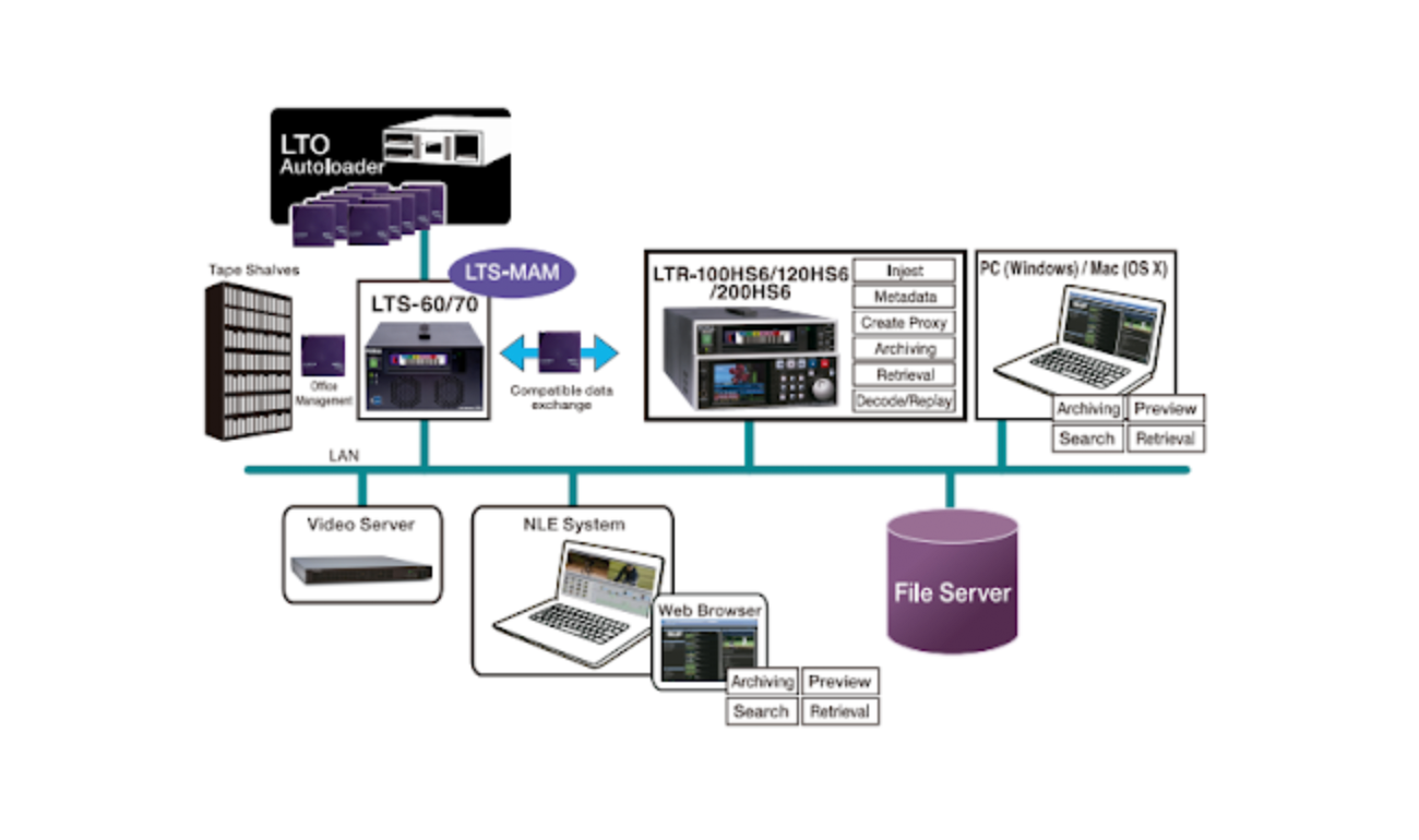 LTS-70 deployment in a network environment dramatically streamlines workflows that involve backup, archiving, or repurposing of material.