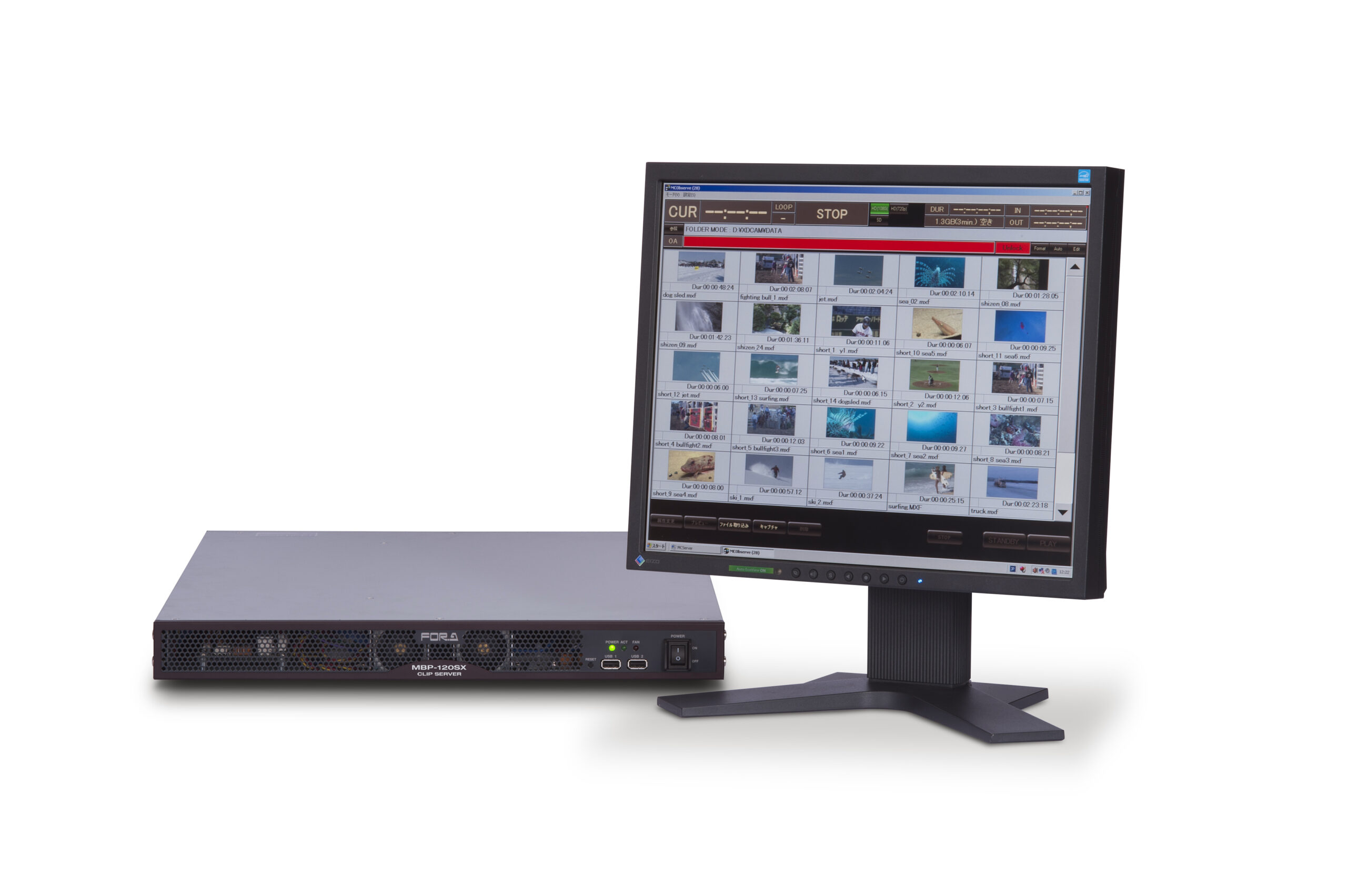 These two models (MBP-120SX/125SX) are compact (1U) video clip servers equipped with HD/SD-SDI inputs and outputs and a solid-state drive (SSD) for recording. Record and play MXF files compatible with Sony XDCAM/XDCAM HD/XDCAM HD422. Clips can be transferred or saved over Gigabit Ethernet. Highly versatile and reliable, the servers can be used in a variety of applications including ingest, playback, and even program playout using a playout system.