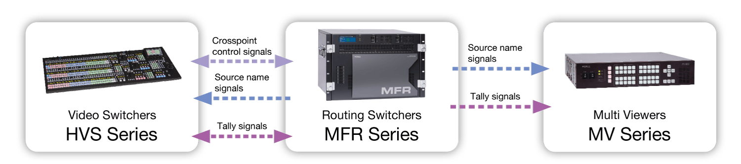 - Integrated management of source names by MFR, which automatically send source names to HVS and MV multi viewers.