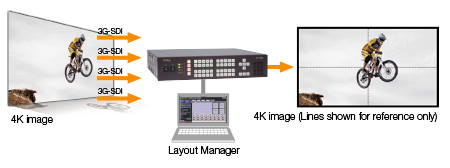 Customize layouts, using the software in Windows to adjust image size, position, title display, and other settings. Up to 16 preset patterns each for 4K/2K modes can be stored. Recall saved layouts directly from the front panel control.