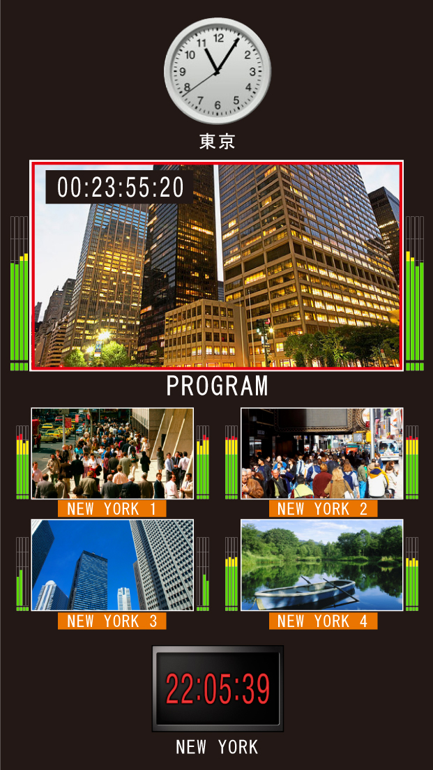 A maximum of 4 clocks can be displayed for each output card. Also, if not used as a clock display, it can be used as a count-up/count-down timer and remaining time counter.