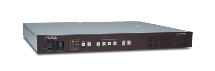 The MV-410HS is a 4-channel multi viewer that supports mixed input of HD-SDI, SD-SDI and analog composite signals. High-resolution video output using a DVI terminal is included as standard. Support is also provided for user-created patterns and video transmission over IP.