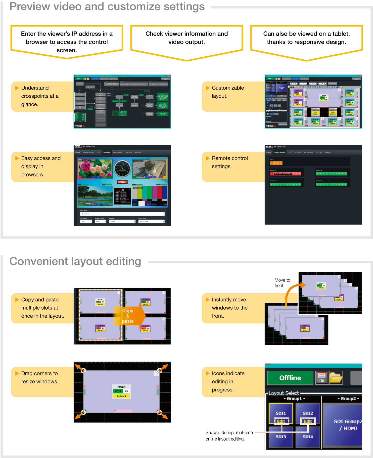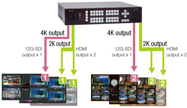 2K or 4K SDI/HDMI output in customizable layouts