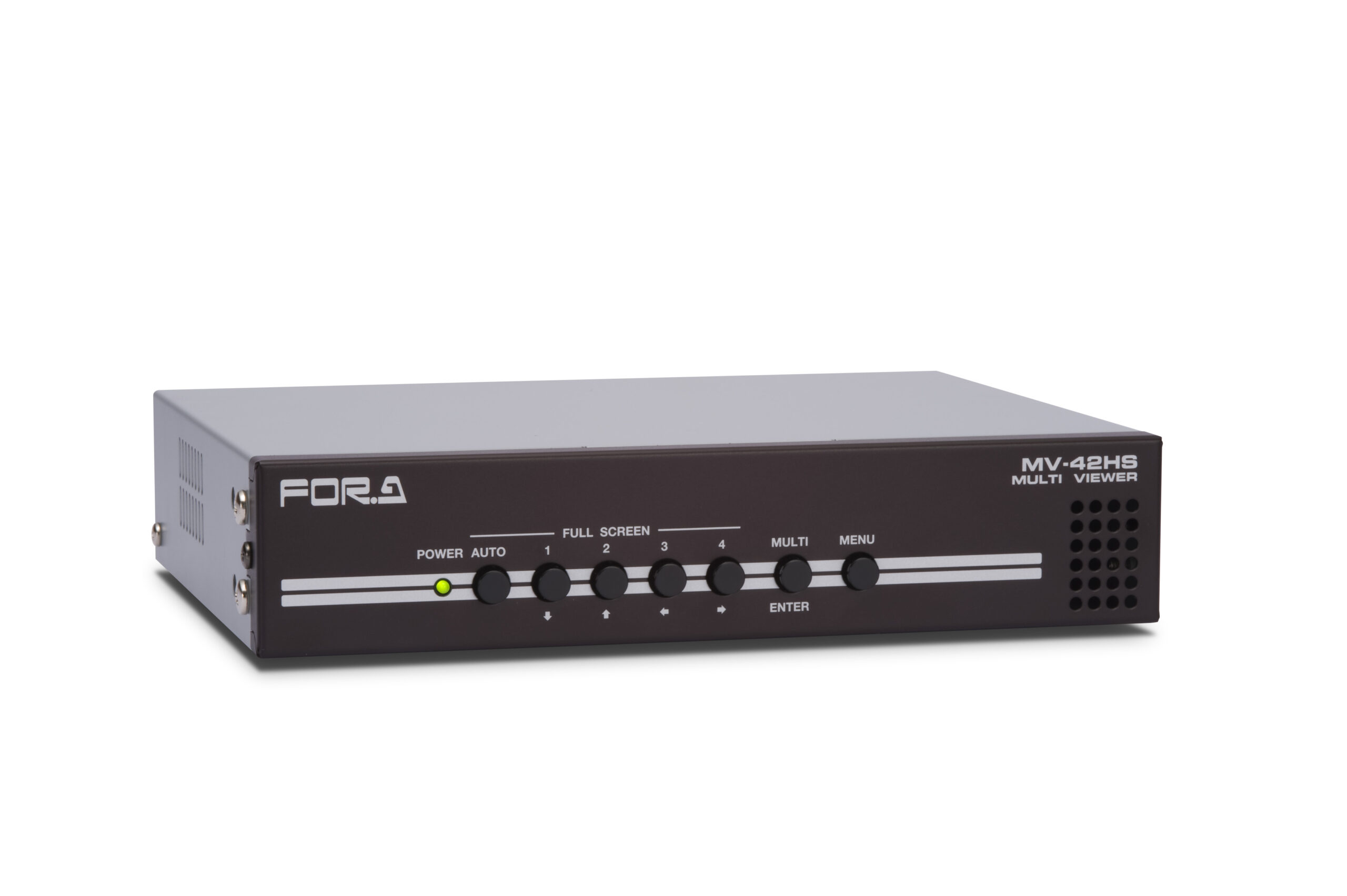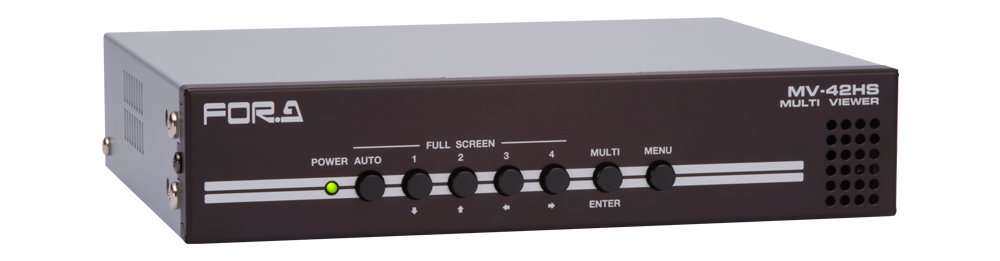 The MV-42HS is a 4-channel multi viewer that resizes and display up to 4 inputs of HD-SDI and SD-SDI signals on a single screen.