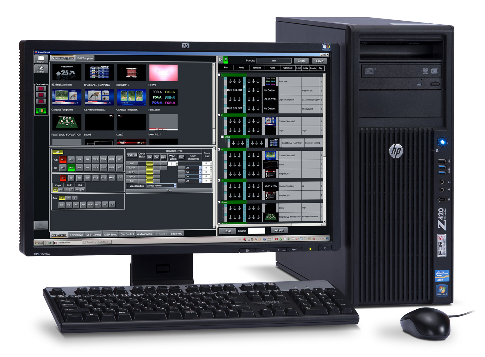SmartDirect is a complete video production system that allows single operator to easily create an entire show. The system is based around an advanced 3D graphic engine, but adds a myriad of features including event list playback/control, CG Titles, Graphs, camera switching and video distribution IP streaming. In addition you can control outboard equipment such as video switchers and dedicated clip servers. A full sensor-less virtual studio is available as an option.