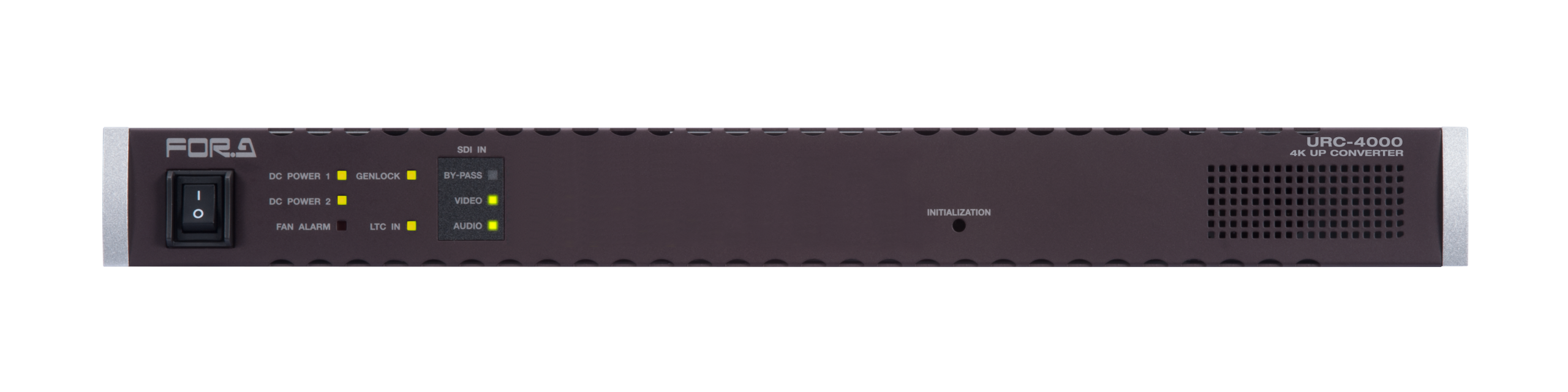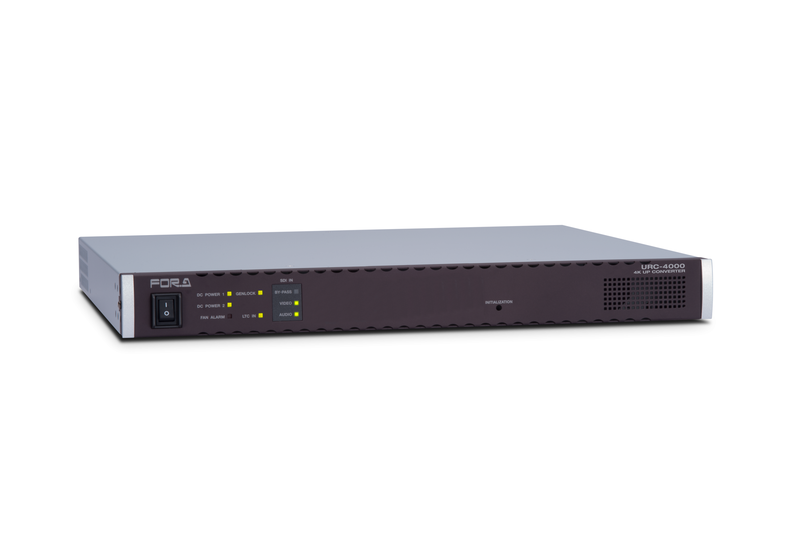 The URC-4000 provides powerful up-conversion and turns HD video into 4K in real time. Original I/P and resolution conversion developed by FOR-A, unleashes a new era in 4K conversion. Spatiotemporal frame interpolation is performed in which spatial and temporal changes in images are detected in high precision, on a pixel-by-pixel basis. Aliasing from conversion are reduced, and the resolution of still image areas is restored. Resolution is further improved through multi-scale nonlinear enhancement. An optional redundant power supply is also available, and firmware can be updated remotely over the Internet. Explore new territory in 4K.
