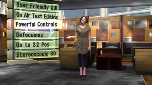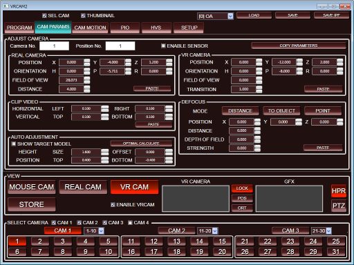 VRCAM, FOR-A's sensor-less virtual studio system enabling a virtual studio using a one-man-operated, no-cameraman environment, has been updated to the VRCAM2 with even more advanced features. The VRCAM2 system includes expanded camera positions, sensored cameras, and a host of other useful additional functions for program production.
