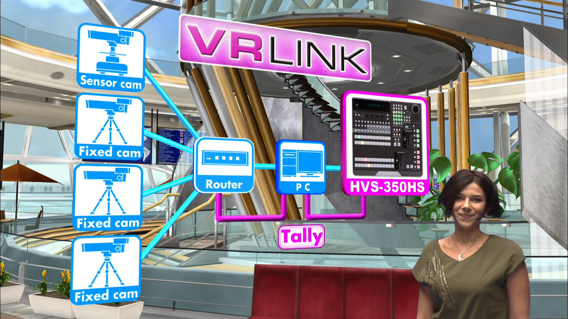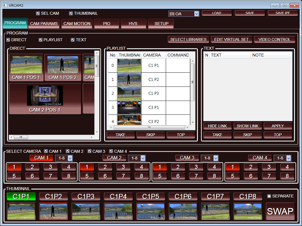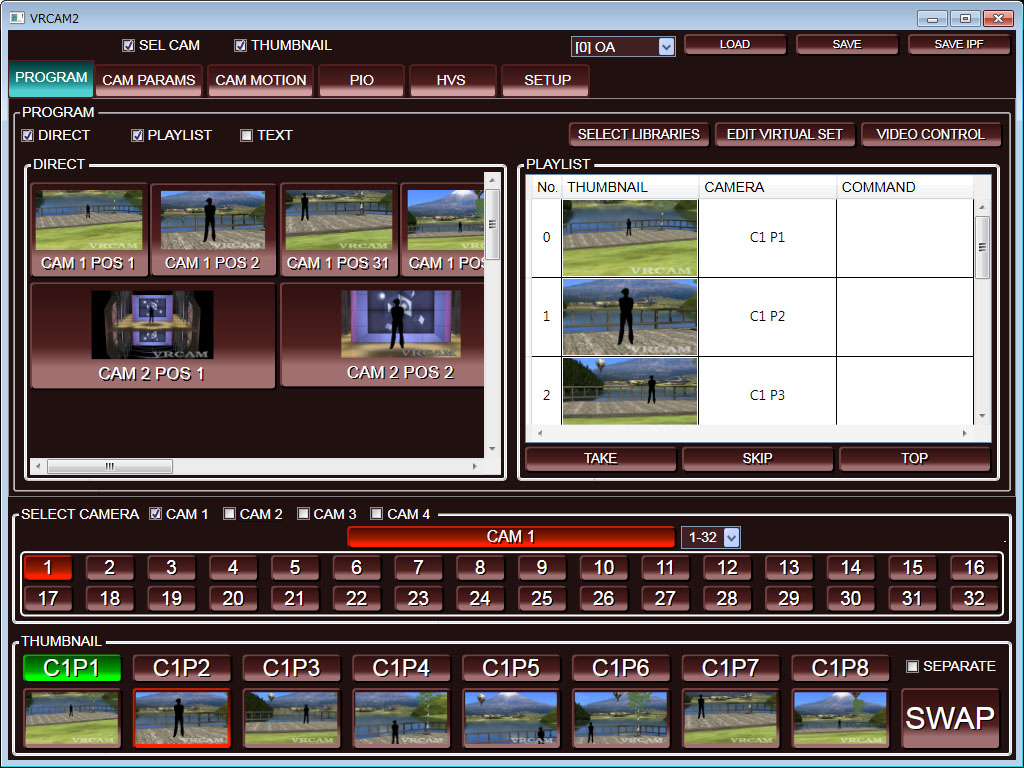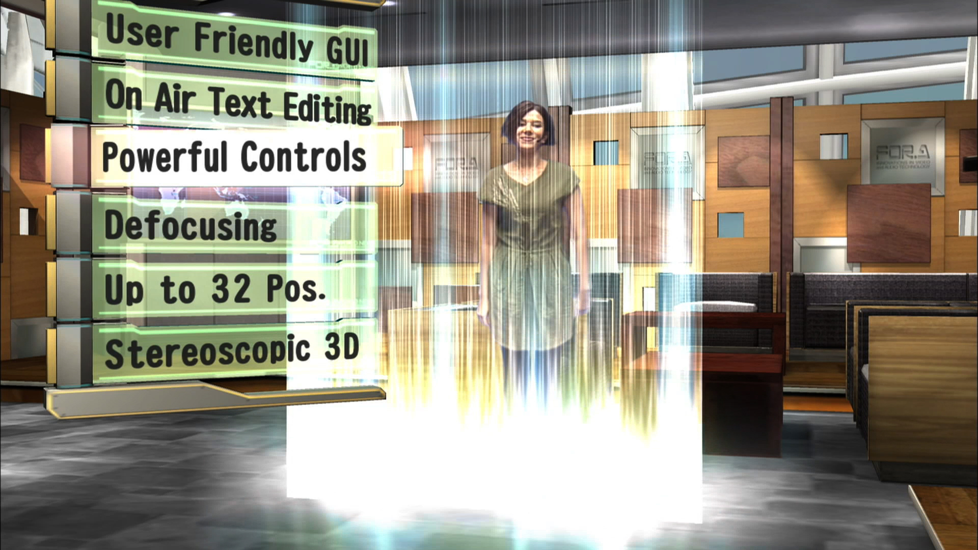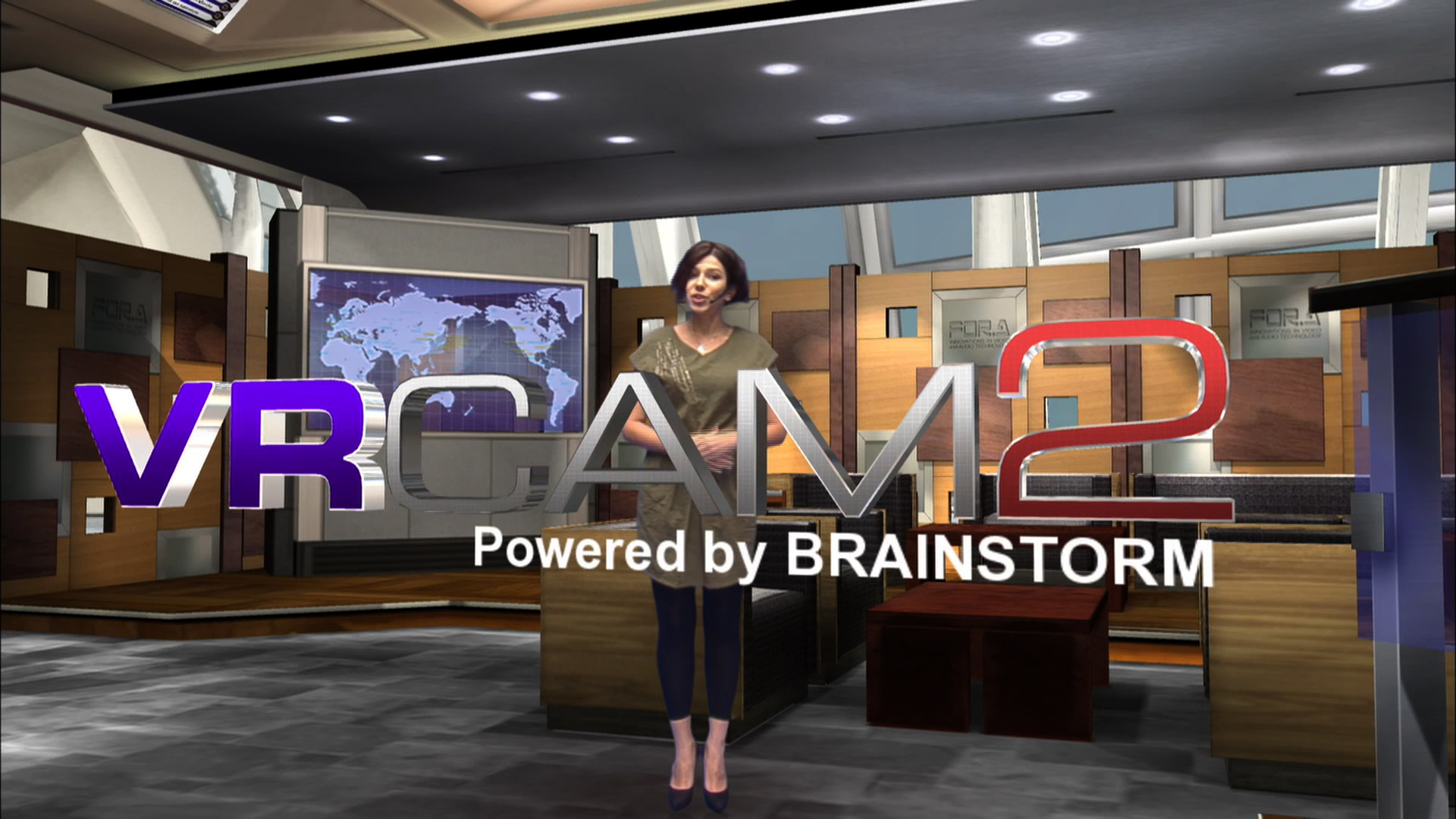 VRCAM, FOR-A's sensor-less virtual studio system enabling a virtual studio using a one-man-operated, no-cameraman environment, has been updated to the VRCAM2 with even more advanced features. The VRCAM2 system includes expanded camera positions, sensored cameras, and a host of other useful additional functions for program production.