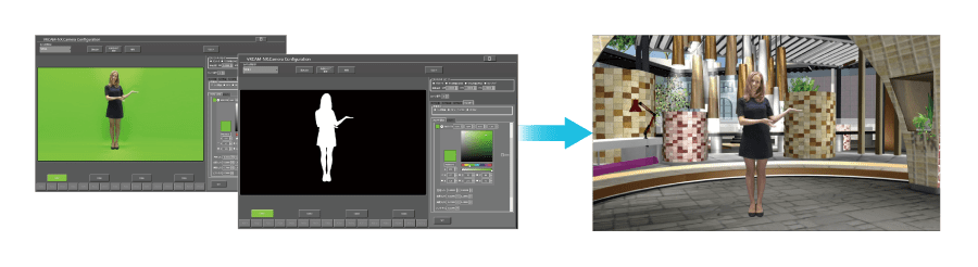 Software-based chroma key processing – No need for an external keyer. – Apply transparency to an area by clicking it to acquire the color. – Store different settings for each camera in chroma key adjustment parameters.