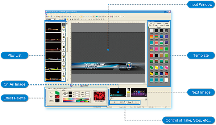 - Intuitive user interface enables users to select a template, customize text and images, and control play-to-air all in one view